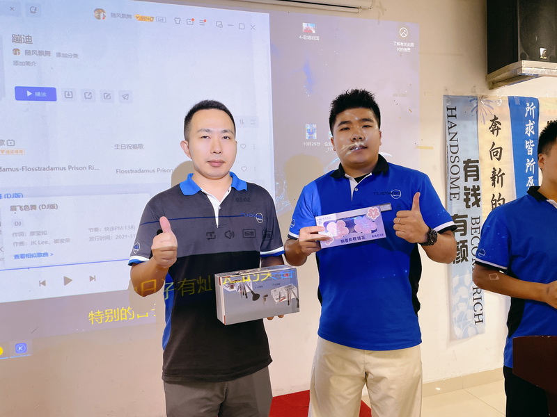 一位幸运的员工在抽到奖品后,激动地说:“真的太意外了,没想到自己能这么幸运。感谢公司为我们举办这么棒的生日会,还准备了这么丰厚的奖品。我一定会更加努力工作,不辜负公司的期望。”